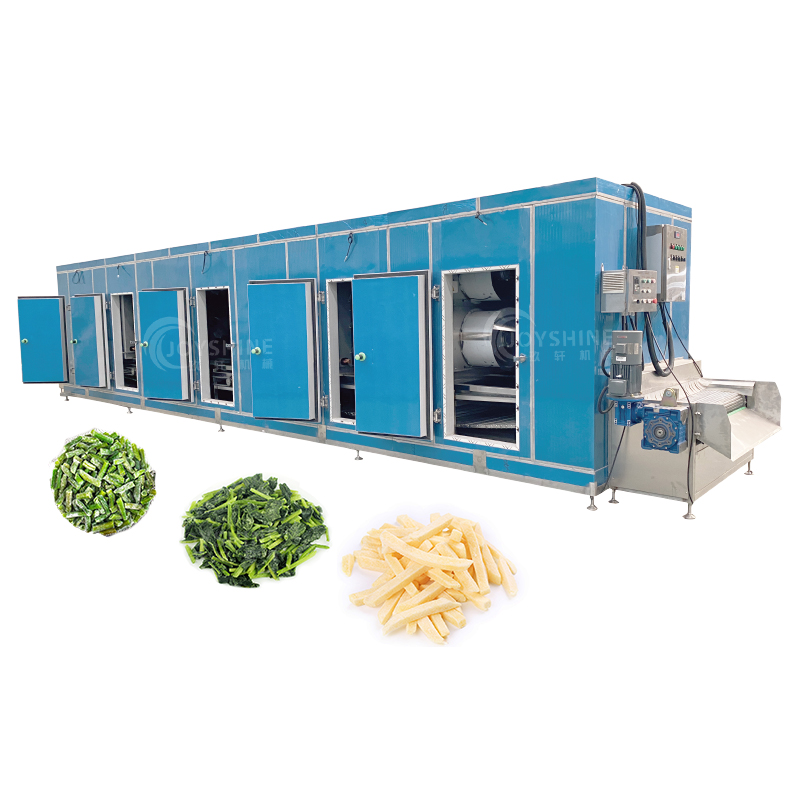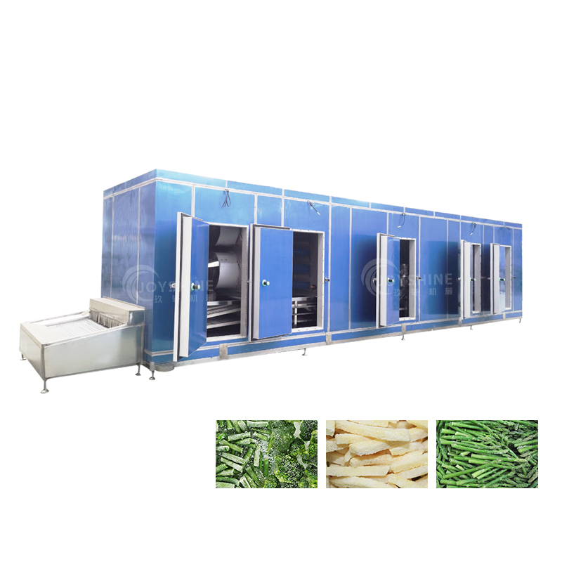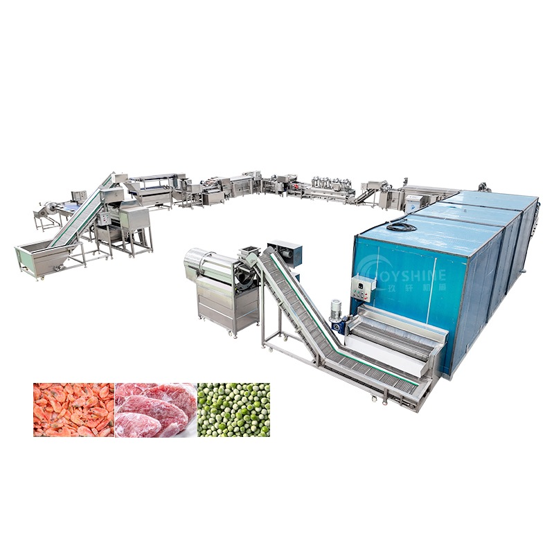 La línea de congelación industrial IQF de Joyshine, con capacidad de 500–2000 kg/h, es ideal para frutas, verduras, carnes y mariscos. Alta eficiencia, fácil de operar y totalmente personalizable según tus necesidades.