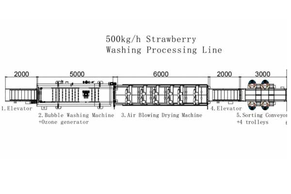 Teniendo en cuenta que la fresa es un fruto delicado y fácil de dañar, Joyshine diseñó para el cliente una línea de lavado de fresas de tipo suave. La línea completa incluye: