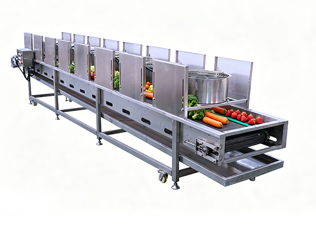 | ✔ | Conectividad Total: Actúa como el puente esencial que conecta las etapas de lavado, corte o fritura con los sistemas de empaque o congelación rápida (IQF). |