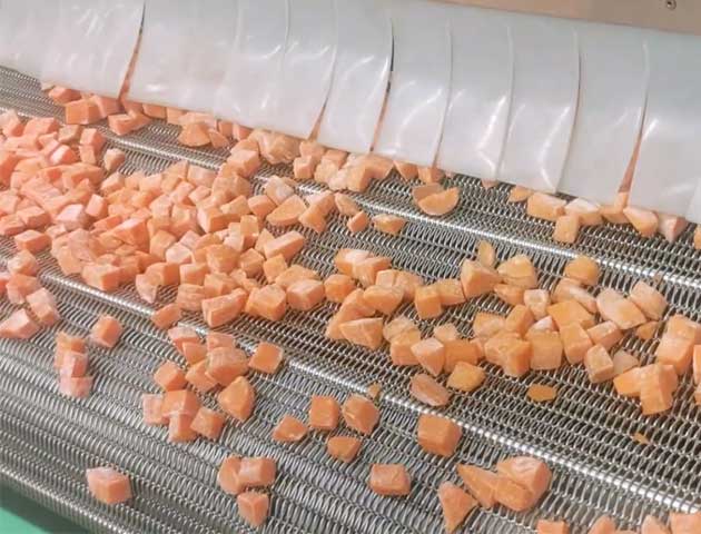 Cinta vibratoria de malla: asegura que los productos permanezcan separados durante la congelación, logrando la verdadera congelación individual.