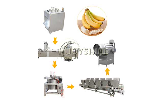 Joyshine ofrece a sus clientes una solución completa para la producción de chips de plátano, adecuada para el procesamiento industrial de plátano verde. La línea está diseñada para garantizar continuidad, estabilidad y normas de higiene, y la capacidad de producción puede ajustarse según las necesidades del cliente, desde 50kg/h hasta 500kg/h (o superior), adaptándose a diferentes tamaños de planta.